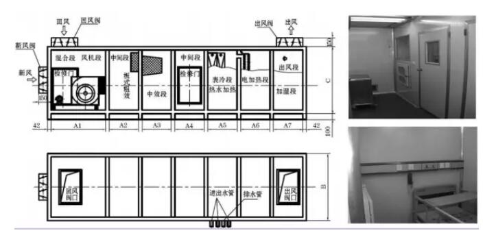 净化空调机组结构示意图见图1, 功能段产品配置及作用说明见表3。