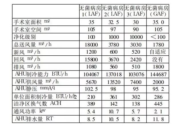 (2)关于制冷能力,无菌病房一般需达到300Btu /hr/f t 2或以上 , 以便提供一个较为舒服的工作环境。风机功率选择对于安装及运行成本又很大的影响 , 而GAF的风机功率较小的情况下 , 能满足病房的制冷要求 。