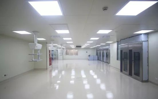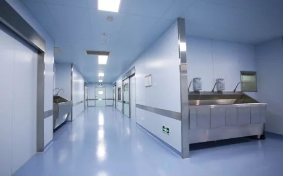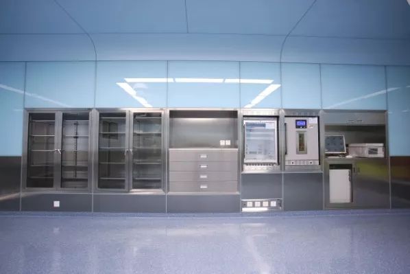 其中手术室OP1墙板采用了玻璃材质,其他手术室墙顶板采用了医疗卫生型钢板;洁净辅房区域、中心供应净化区域采用了无机预涂板;中心供应污洗区及灭菌区采用了不锈钢墙板;手术室采用抗静电橡胶地材,其他区域采用抗静电PVC地材;湿区为瓷砖地面。