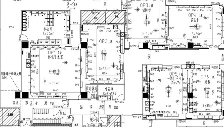 ▲ 上海儿童医学中心手术室平面图(部分)