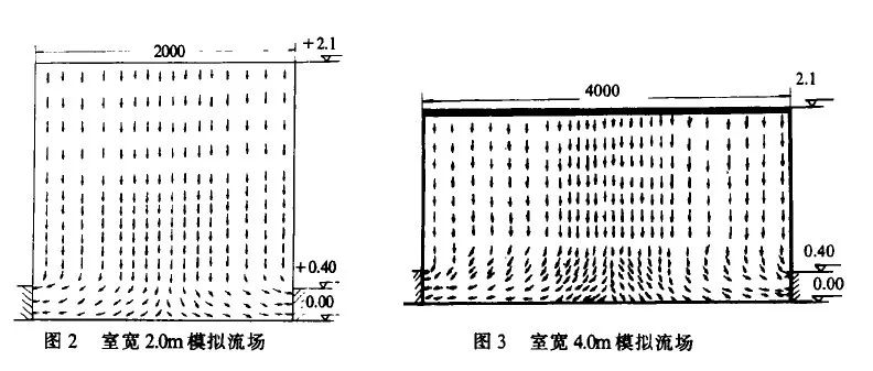 由图5可见,当室宽一定时,回风口高度越小工作区内的流线垂直性越好;回风口高度一定时,室宽增大流线偏角增大。
