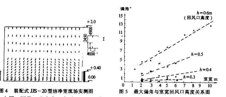 这样,工作区高度上面流线的偏斜就成为影响工作区流型的关键因素.对模拟结论发现,流线的最大偏角出现的位置和角度都与室宽、回风口高度有密切的关系,见图5。
