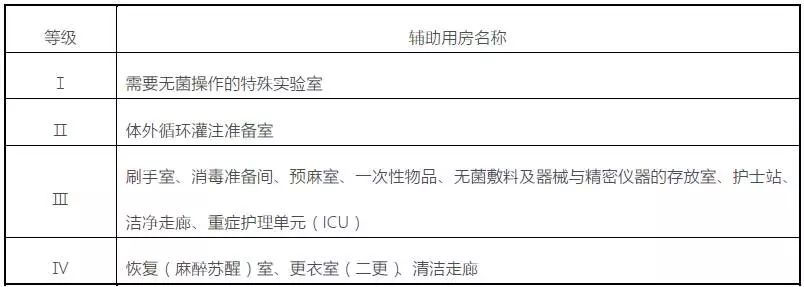主要洁净辅助用房分级