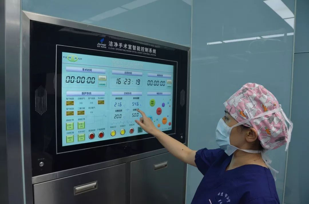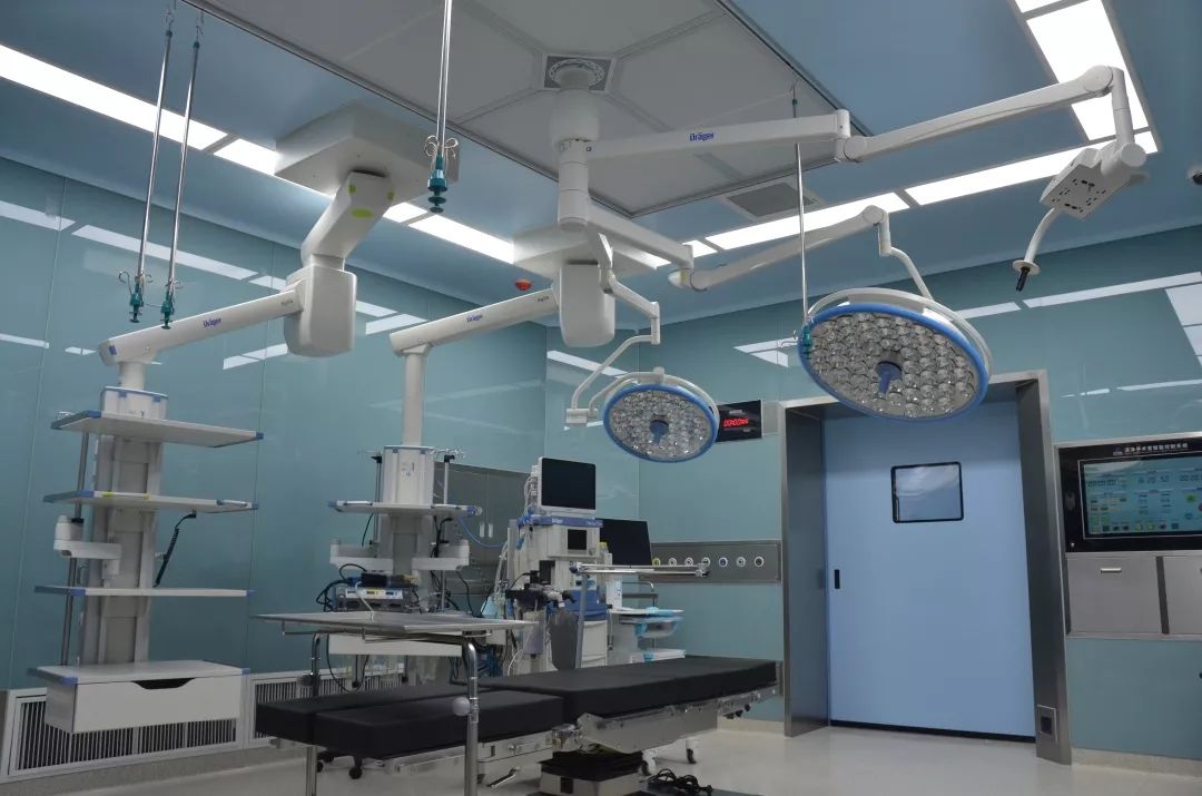 手术间安装高密性进口电动推拉门,室内配有德尔格电动麻醉塔及外科塔,一体化触摸式智能控制面板。