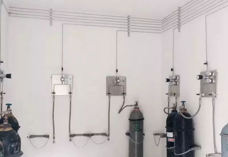 2、供气系统要求采用两级减压的方式进行供气,供气汇流排第一次减压,气体由15Mpa减压到1.5Mpa以下,再输送到各用气实验室,二级减压器安装在各用气实验室或用气点,方便统一控制通风柜或仪器用气的输入压力,用气终端配有中压球阀和压力指示表,二级减压器对压力进行精确调整(0.01Mpa),得到稳定的压力,可以满足仪器对不同使用压力的要求,一、二级减压器均配有压力表,可实时显示当前压力;